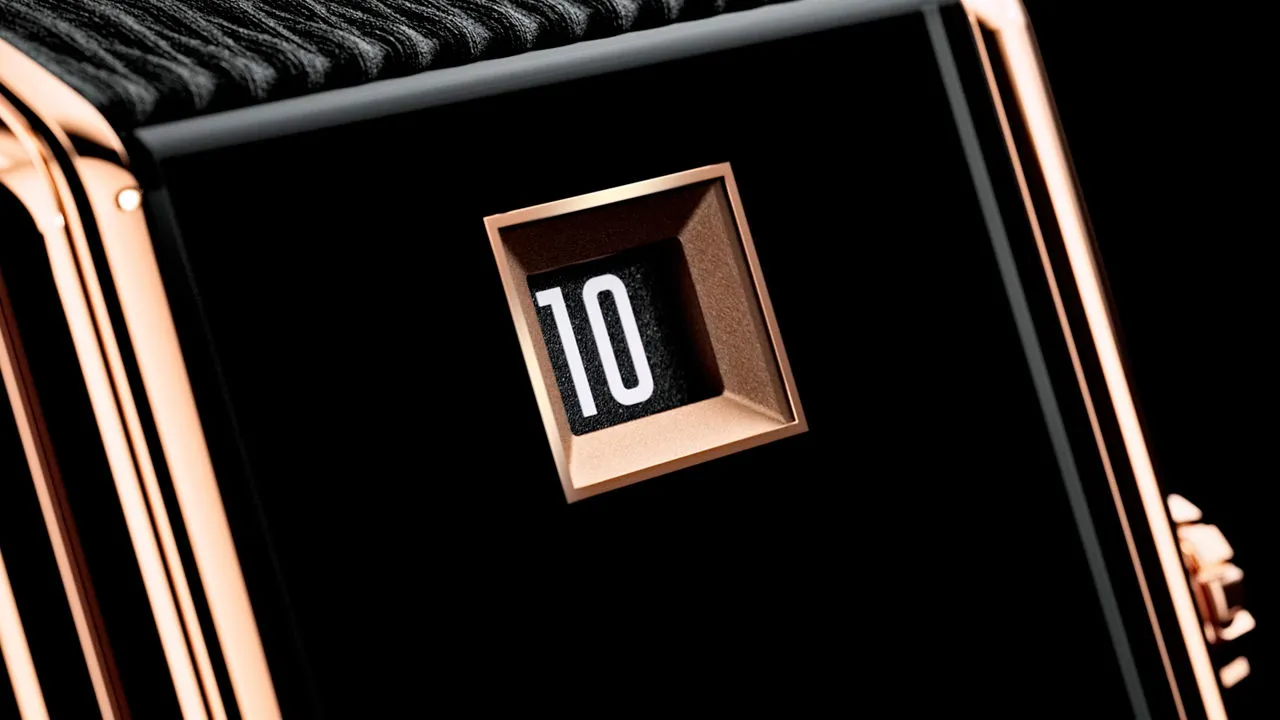 Even the strap feels deliberate. An integrated black calfskin strap with a new motif developed specifically for this watch keeps the whole thing cohesive. No bracelet chasing attention, no over-designed clasp. Just a pin buckle in matching pink gold, doing its job and getting out of the way.