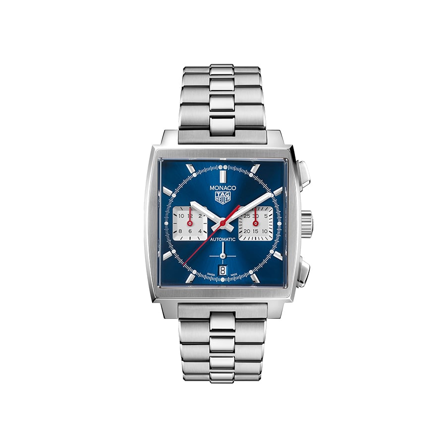 First introduced in 1969 in honour of the Monaco Grand Prix, the Heuer Monaco was the world’s first square-cased automatic chronograph and was an immediate hit among watch fans. Its popularity only intensified after Steve McQueen wore one in the 1971 film Le Mans.
