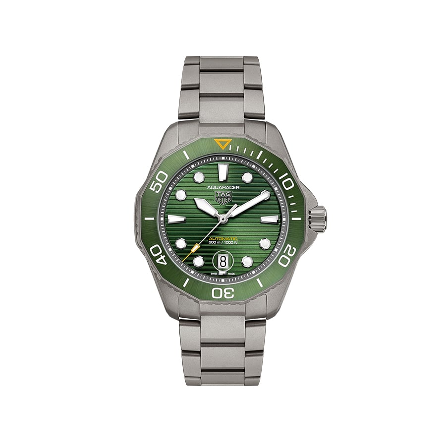 Crafted from sandblasted grade 2 titanium and boasting 300m of water resistance – as well as an eye-catching sunray green dial and bezel – this is one on-trend dive watch that’s a cut above the competition.