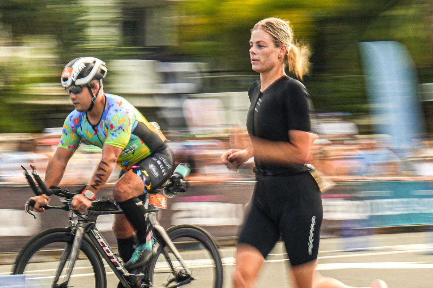The course itself is quintessential Noosa: a crystal-clear swim in Laguna Bay, a rolling bike leg through the hinterland, and a run that winds through the heart of town before finishing in front of roaring crowds.