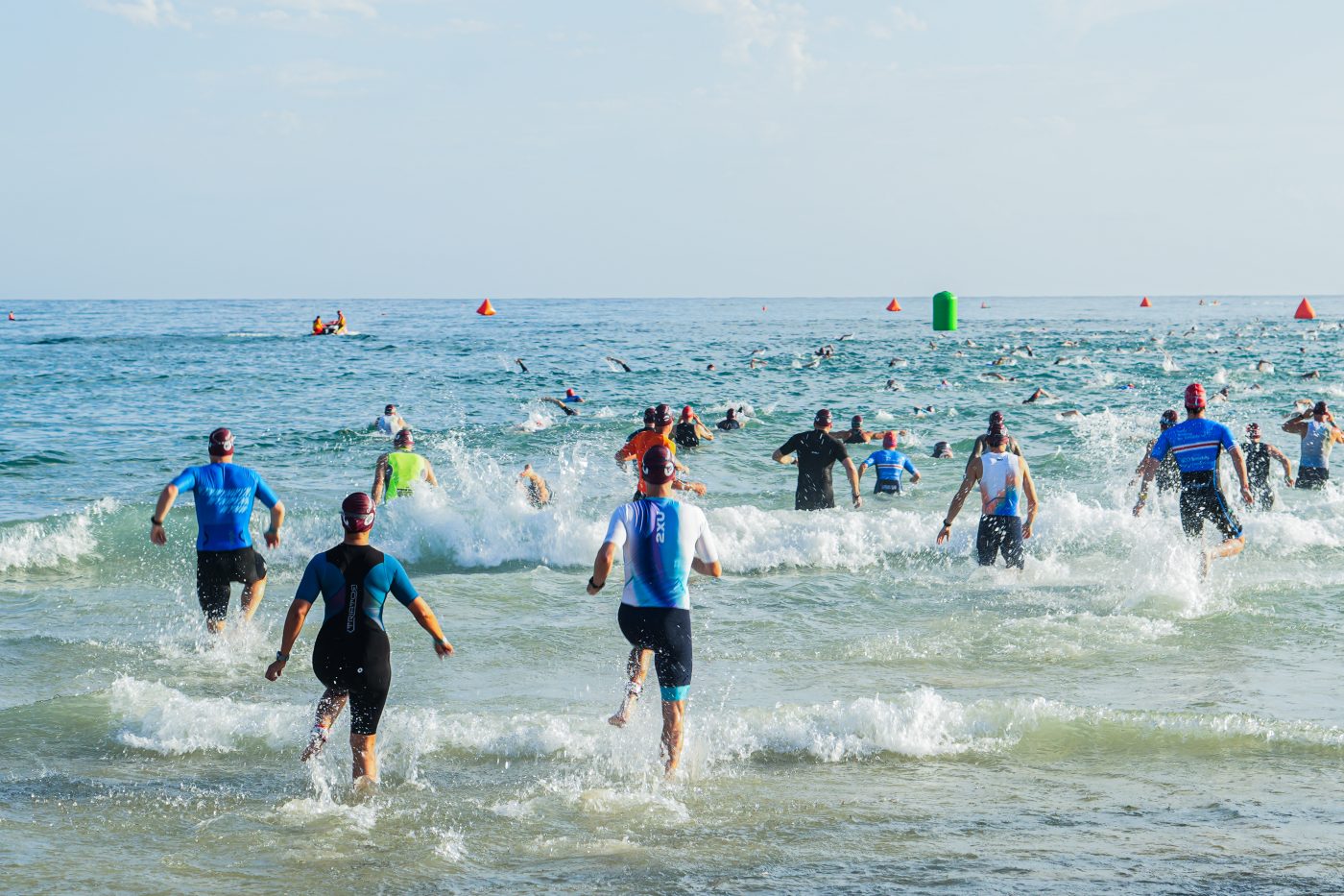 Come race morning, Noosa Main Beach transforms into a sea of neoprene and colour, as the sunrise creeps over the horizon and the athletes wade into the water.