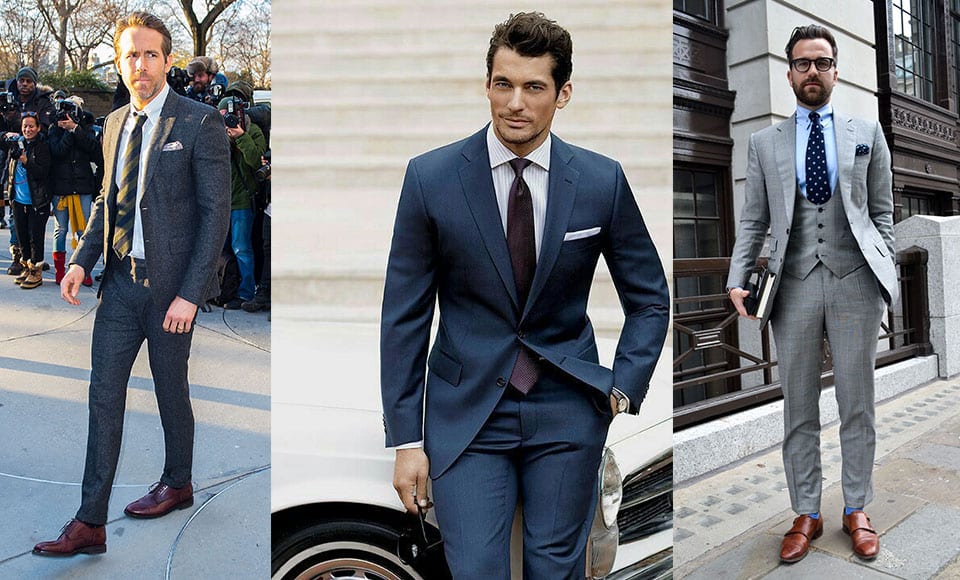 If you’re wearing a skinny tie, keep it simple. Opt for dark block colours and either a knitted or silk version. The more matte the fabric the better. Ryan Reynolds in La La Land is an ideal reference. Like all the gentleman above, this tie tends to work best on a starchy plain white shirt. Keep accessories minimal and stick with greys and blues.