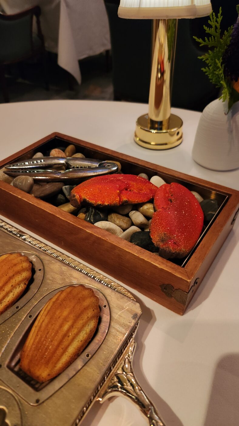 The meal was finished with chocolate lobster claws and washed with more Veuve Cliquot.