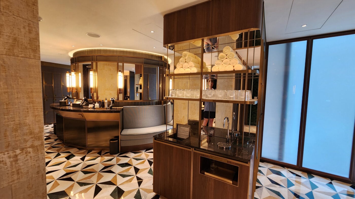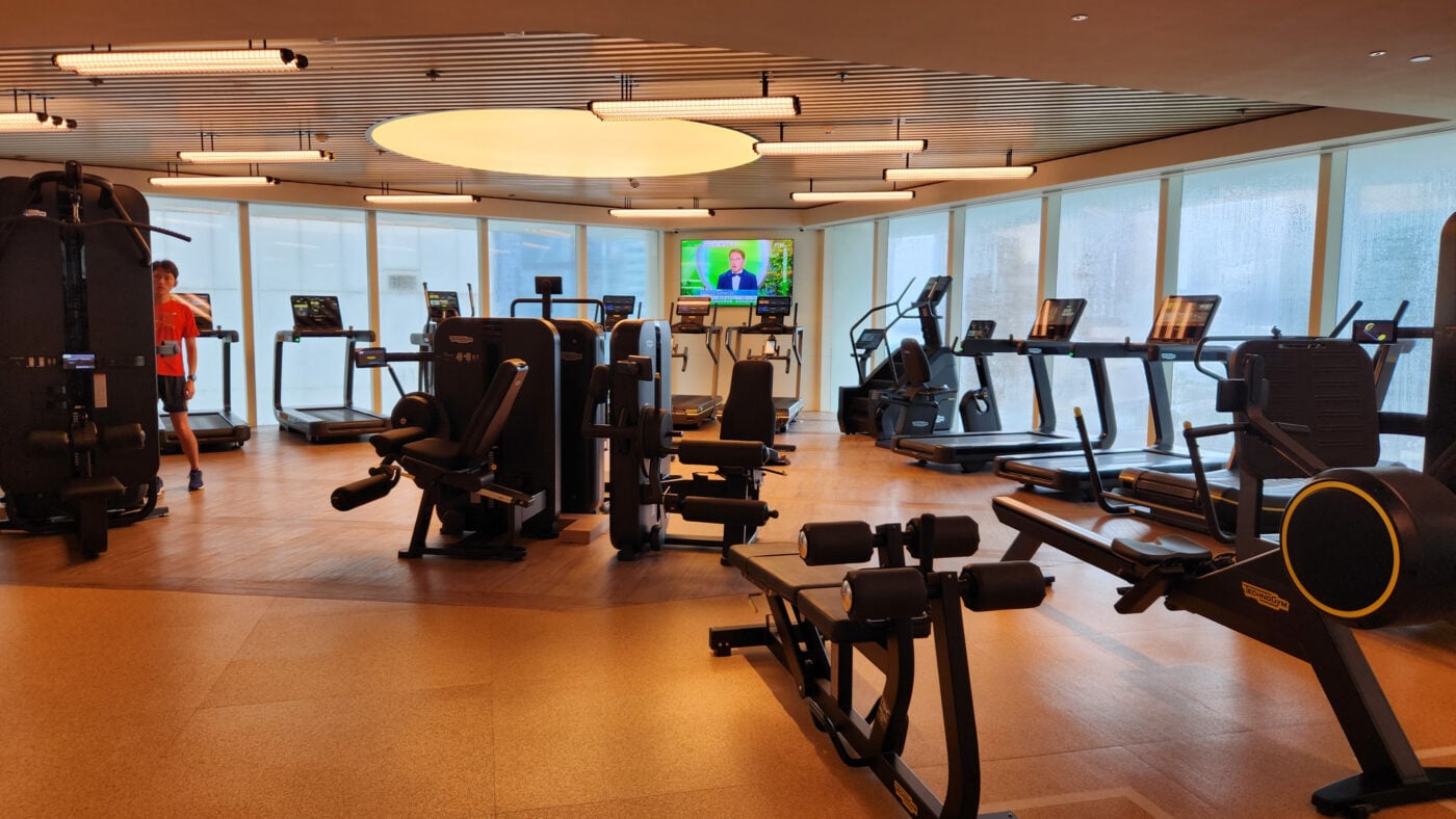 The gym has the latest Technogym equipment, ensuring you never have to wait for a bench. The hotel has even replaced bottled water with refill stations that track how many bottles have been saved from landfills, promoting environmental consciousness.