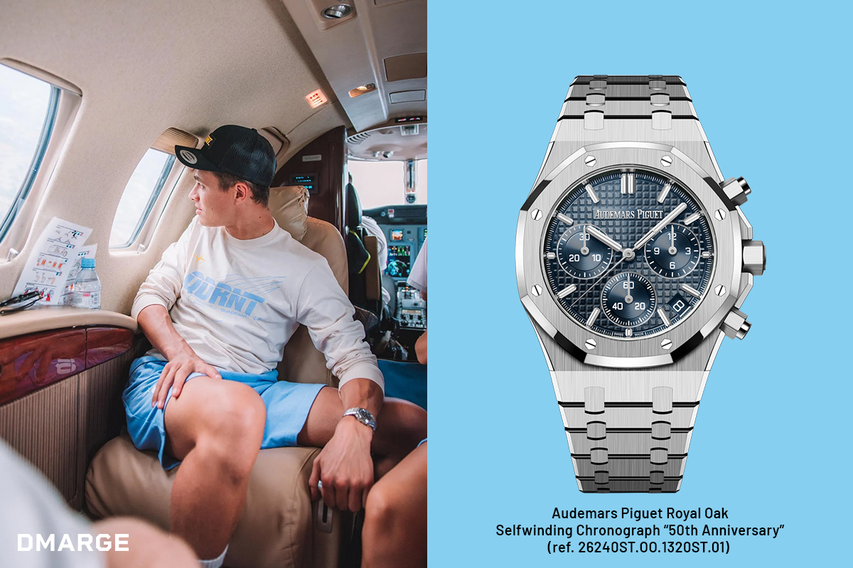 Norris’ recent posts show him wearing a brand-new Audemars Piguet Royal Oak Selfwinding Chronograph “50th Anniversary” (ref. 26240ST.OO.1320ST.01), which retails for AU$45,420.