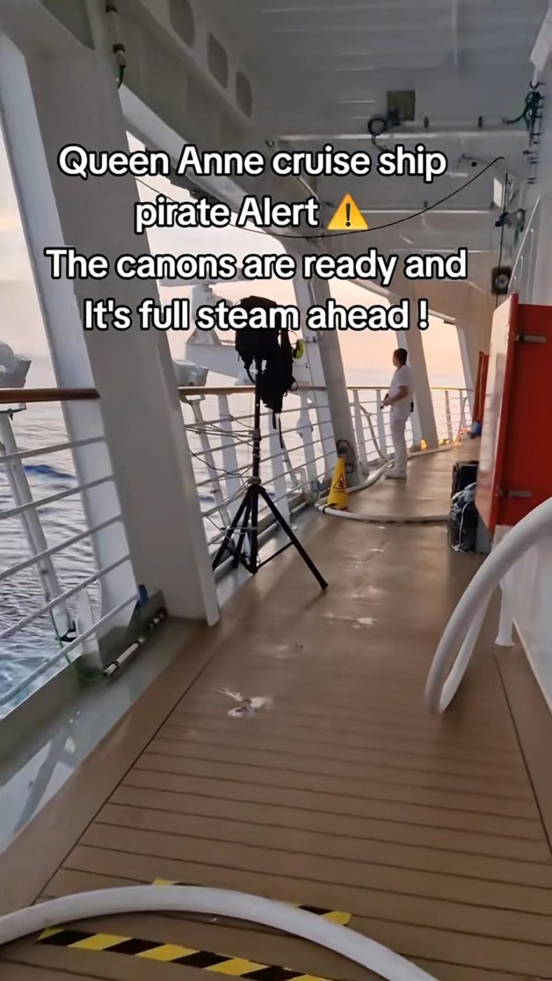 The moment didn’t just stay confined to the ship. Passengers went on social media and captured eerie footage of the ship’s silent decks and mounted high-pressure water cannons – industrial-grade gear designed to knock intruders off the side of the ship and make boarding attempts all but impossible.