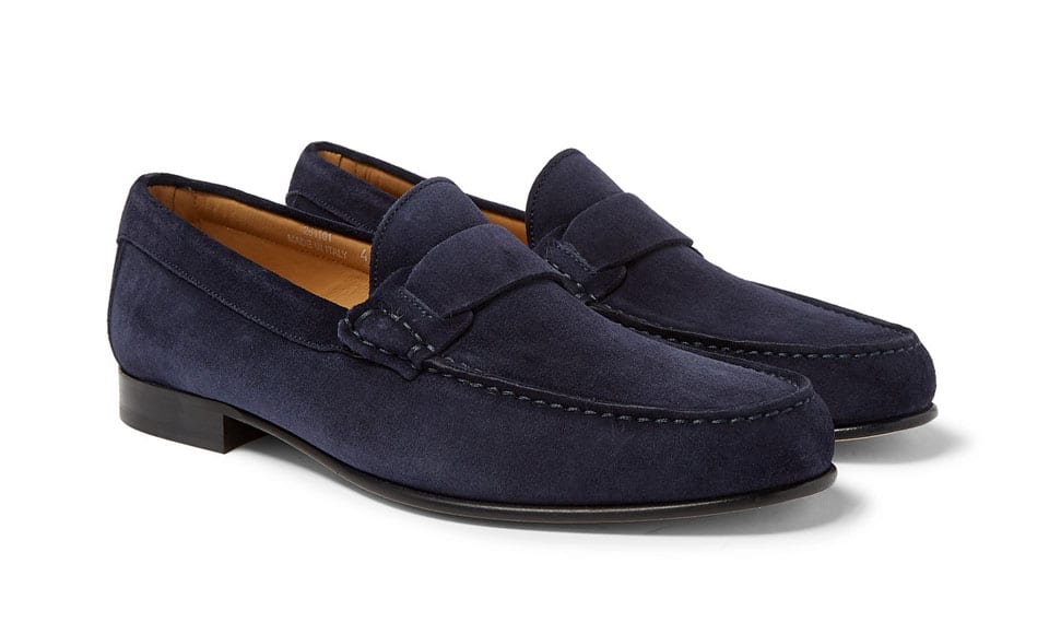 Glossy leather is the most foolproof choice. It’s as elegant as it gets, and can be worn anywhere that requires a suit and proper comportment. Take the shine out of the leather and you have a less formal, but still dressy, shoe. Suede brings the formality down yet another notch, but still looks smart.