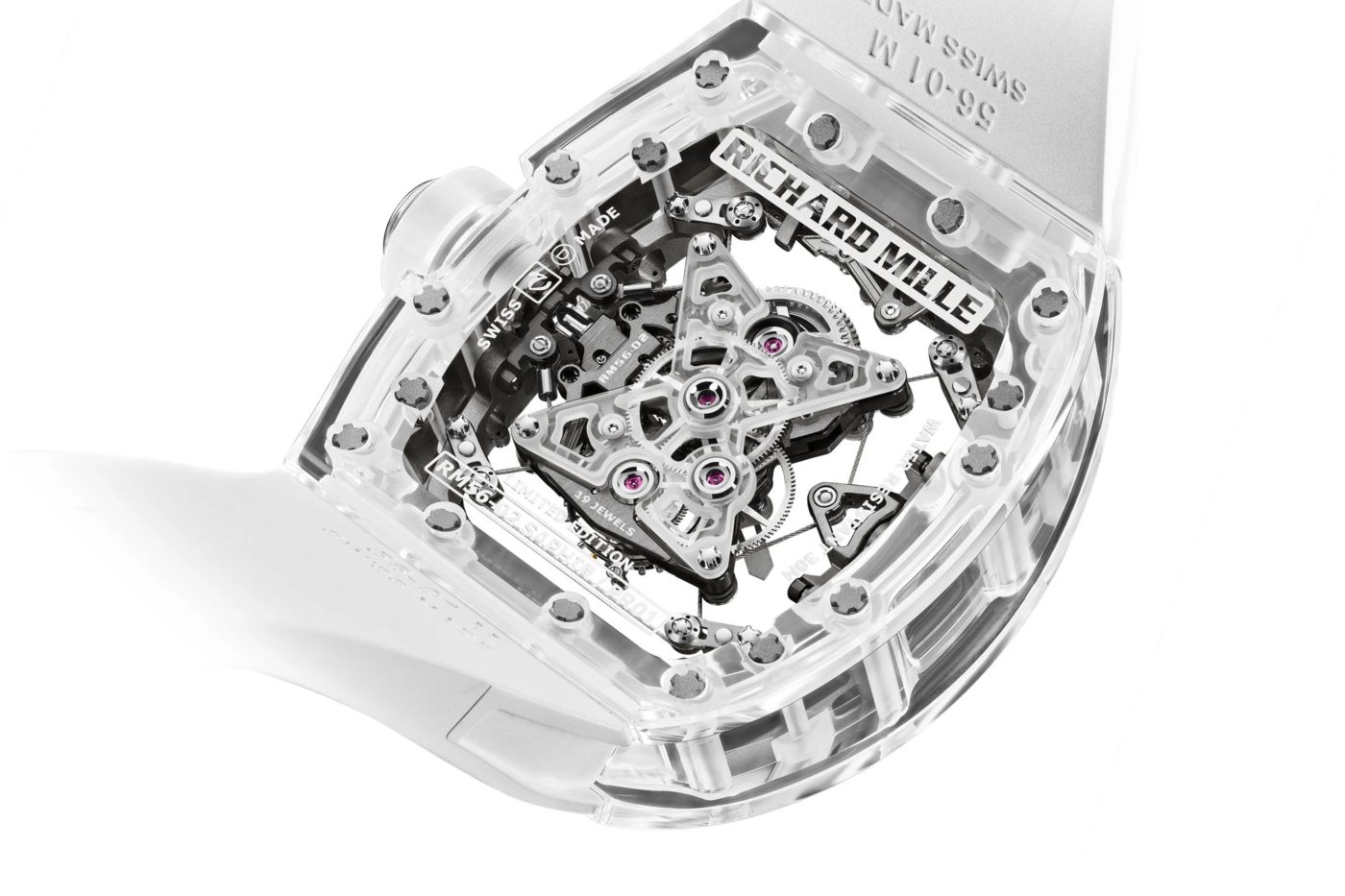 Without a rotor or self-winding module, the movement sits lighter and completely exposed within the watch. It’s a reflection of RM’s enduring philophy around stripping down unnecessary mass, inspired largely by the incredible feats of Formula 1 engineers.