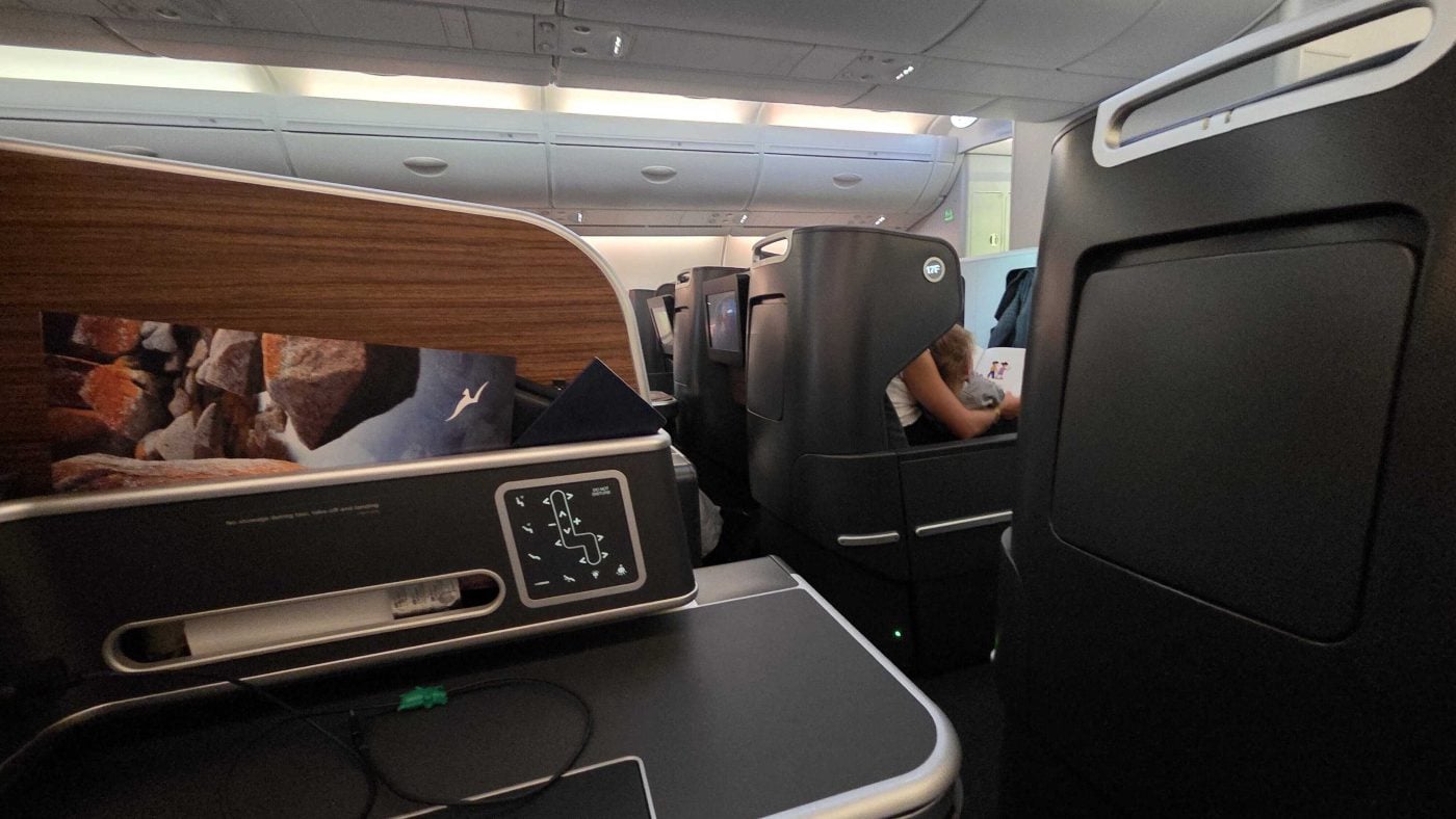 Each seat offers direct aisle access and a generous amount of space, especially when fully flat. Privacy is built into the staggered layout, with even window seats in even rows offering the most seclusion. There’s no door, but the separation is enough to avoid eye contact with strangers for 13 hours straight.