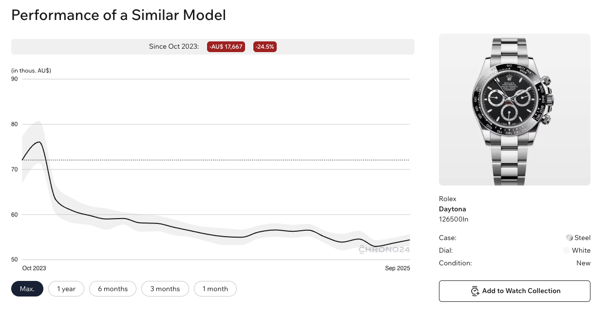 By 2020 to 2022, secondary prices detached from retail. A steel Daytona at list was a lottery win. Submariners, GMTs and Explorers sold above RRP the moment they left the boutique. Forums were full of fresh wrist shots followed by resale screenshots.
