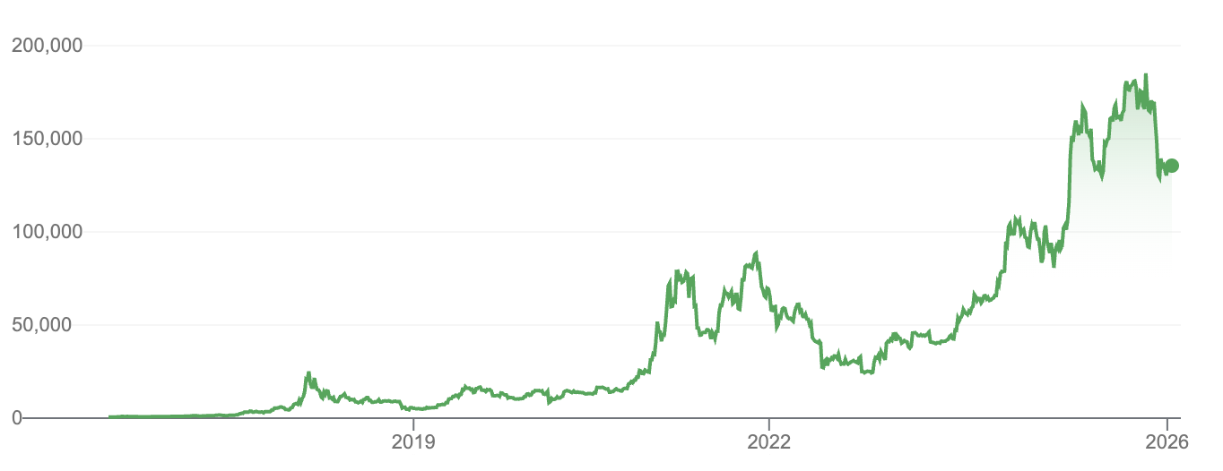 In 2016, Bitcoin was trading roughly between US$500 and US$700 (around AUD $750–1,050), volatile, poorly understood and widely dismissed. At the same time, a steel Rolex Submariner sat comfortably around US$7,500–8,000 (AUD $11,000–12,000), while an Omega Speedmaster could be bought for closer to US$5,000 (around AUD $7,500).